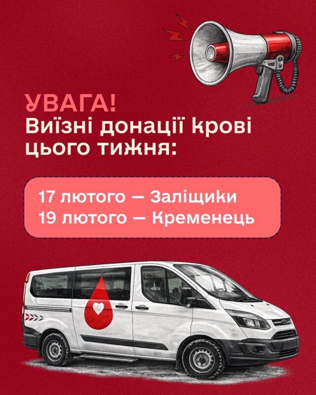 УВАГА! Виїзні донації крові цього тижня Запрошуємо жителів області долучитися до донорства 😌 📍 17 лютого — Заліщики 📍 19 лютого — Кременець Ваша донація може […]