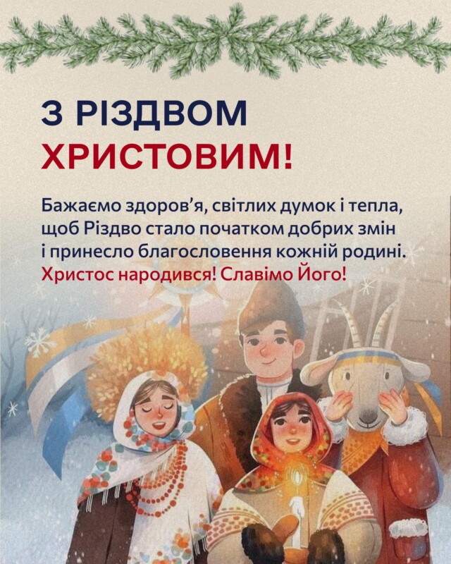 Нехай у ці святкові дні в кожному домі запалає світло тепла і надії, а різдвяна зірка осяє шлях добрими думками та щирими вчинками. Нехай тиша Святої […]