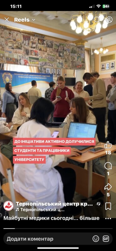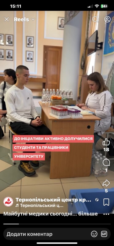 Особливо цінно, що до ініціативи активно долучилися студенти — майбутні медики, які як ніхто розуміють значення донорства. Своїм прикладом вони не лише допомагають пацієнтам, а й формують культуру відповідальності та підтримки.